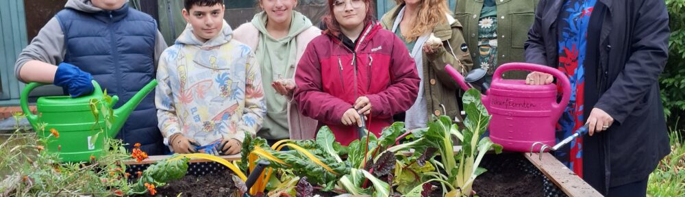 Der Schulgarten ist seit März fest im Stundenplan verankert. Im Innenhof entsteht derzeit ein geschützter Küchengarten mit Kräutern und Naschobst – dort wachsen bereits Mangold, Lauch, Basilikum, Salat, Kapuzinerkresse und Sauerampfer. Draußen, auf einem kleinen Acker am Rand des Sportplatzes, gedeihen Kartoffeln, Erdbeeren, Erbsen und Zucchini. Beim Säen, Gießen und Jäten erfahren die Schülerinnen und Schüler, wie viel Geduld und Pflege Pflanzen brauchen – und wie aus eigener Arbeit sichtbare Ergebnisse entstehen.